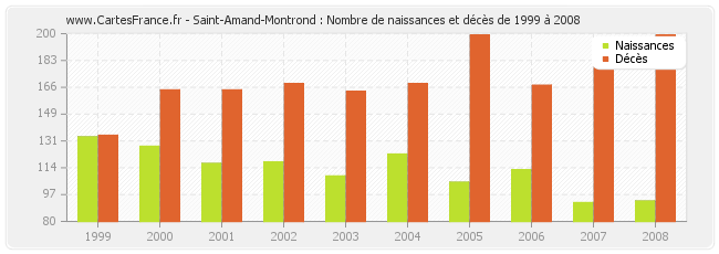 - Saint-Amand-Montrond en 2008 : 93 naissances et 199 décès