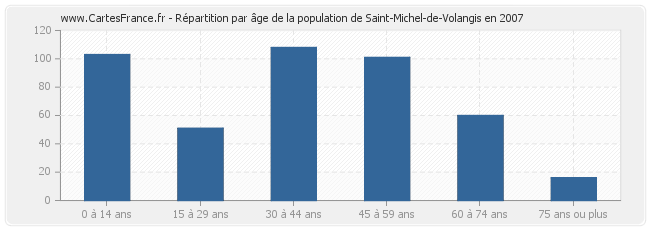 Répartition de la population de Saint-Michel-de-Volangis par âge en 2007 :