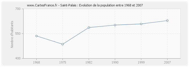 La population de Saint-Palais était de 629 habitants en 2007, 609 habitants en 1999, 602 habitants en 1990, 587 habitants en 1982, 486 habitants en 1975 et 536 habitants en 1968.