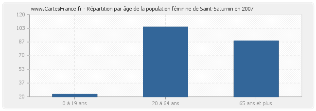 Répartition de la population féminine de Saint-Saturnin par âge en 2007 :