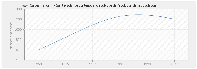 Cette courbe reprend l'historique de la population de Sainte-Solange de 1968 à 2007 en interpolation cubique. Ceci permet d'obtenir plus précisément la population de la commune de Sainte-Solange les années ou aucun recensement n'a été effectué.