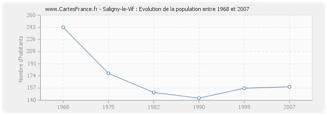 La population de Saligny-le-Vif était de 159 habitants en 2007, 157 habitants en 1999, 143 habitants en 1990, 151 habitants en 1982, 178 habitants en 1975 et 243 habitants en 1968.