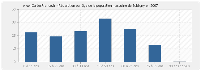 Répartition de la population masculine de Subligny par âge en 2007 :