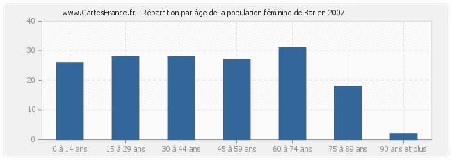 Répartition de la population féminine de Bar par âge en 2007 :