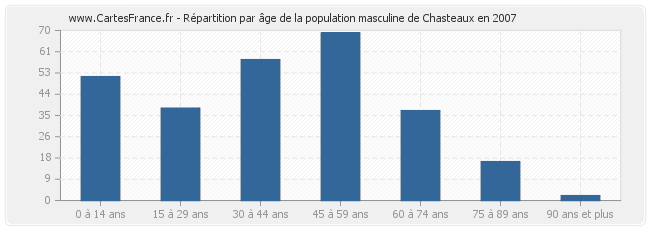 Répartition de la population masculine de Chasteaux par âge en 2007 :