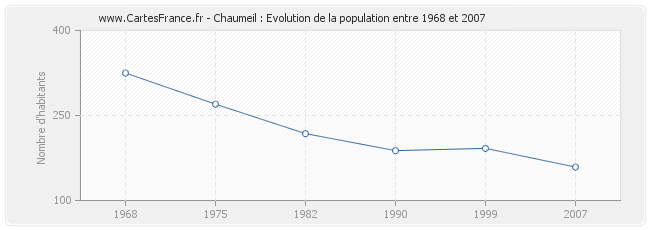 La population de Chaumeil était de 159 habitants en 2007, 192 habitants en 1999, 188 habitants en 1990, 218 habitants en 1982, 270 habitants en 1975 et 325 habitants en 1968.
