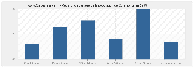 - Population de Curemonte de 60 à 74 ans : 50 habitants