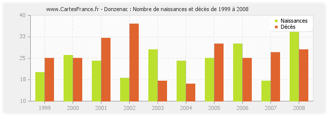 - Donzenac en 2008 : 35 naissances et 28 décès