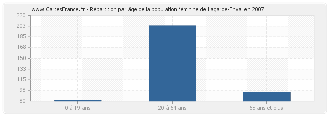 Répartition de la population féminine de Lagarde-Enval par âge en 2007 :
