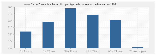 - Population de Mansac de 30 à 44 ans : 257 habitants