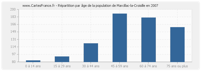 - Population de Marcillac-la-Croisille de 60 à 74 ans : 181 habitants