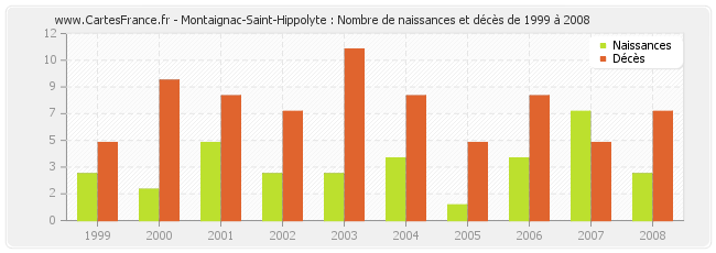 Montaignac-Saint-Hippolyte : naissances et décès de 1999 à 2008