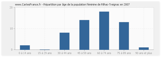 Répartition de la population féminine de Rilhac-Treignac par âge en 2007 :
