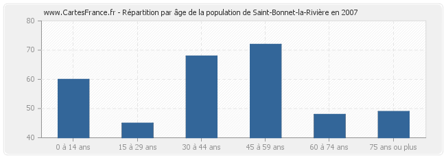 - Population de Saint-Bonnet-la-Rivière de 45 à 59 ans : 72 habitants
