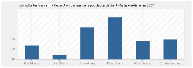Répartition de la population de Saint-Martial-de-Gimel par âge