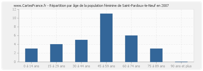 - Femmes de 45 à 59 ans habitant Saint-Pardoux-le-Neuf : 11