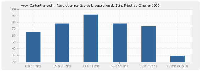 - Population de Saint-Priest-de-Gimel de 30 à 44 ans : 92 habitants