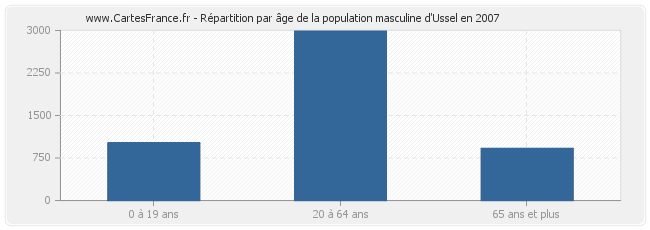 - Hommes de 20 à 64 ans habitant Ussel : 2 987