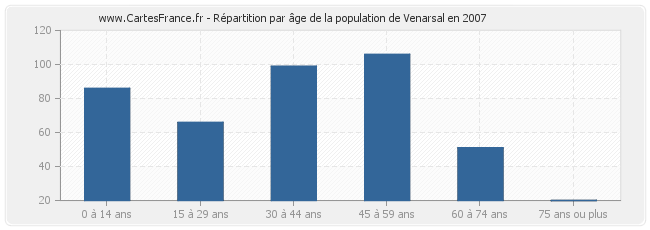 - Population de Venarsal de 45 à 59 ans : 106 habitants