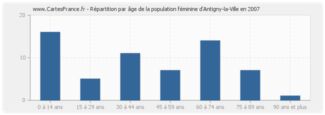 - Femmes de 0 à 19 ans habitant Antigny-la-Ville : 16
