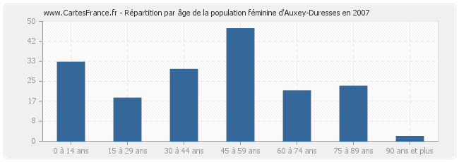 - Femmes de 45 à 59 ans habitant Auxey-Duresses : 47