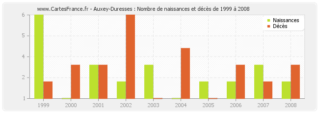 - Auxey-Duresses en 2002 : 2 naissances et 6 décès