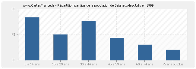 - Population de Baigneux-les-Juifs de 45 à 59 ans : 43 habitants