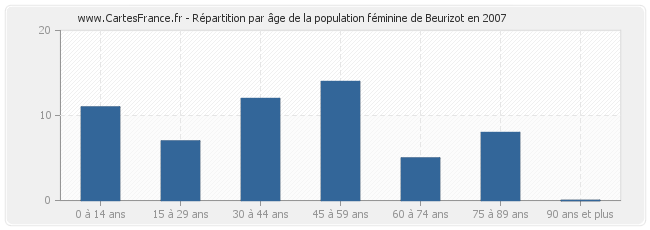 Répartition de la population féminine de Beurizot par âge en 2007 :