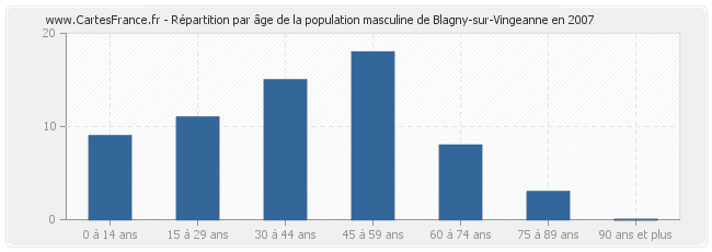 Répartition de la population masculine de Blagny-sur-Vingeanne par âge en 2007 :