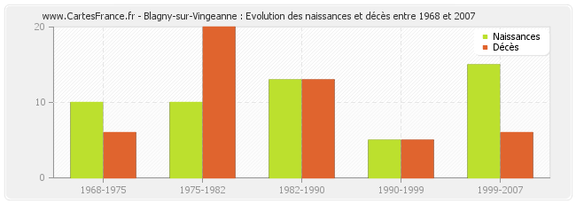 Blagny-sur-Vingeanne : évolution des naissances et décès de 1968 à 2007