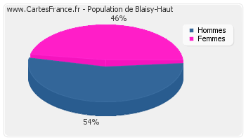- Le nombre de femmes habitant Blaisy-Haut en 2007 était de 54