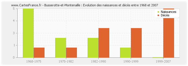 Busserotte-et-Montenaille : évolution des naissances et décès de 1968 à 2007