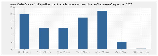 Répartition de la population masculine de Chaume-lès-Baigneux par âge en 2007 :
