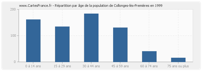 Répartition de la population de Collonges-lès-Premières par âge en 1999 :