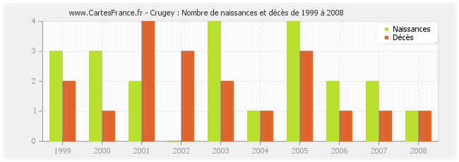 Crugey : évolution des naissances et décès de 1968 à 2007