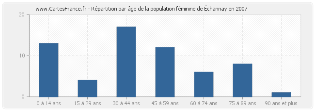 - Femmes de 30 à 44 ans habitant Échannay : 17