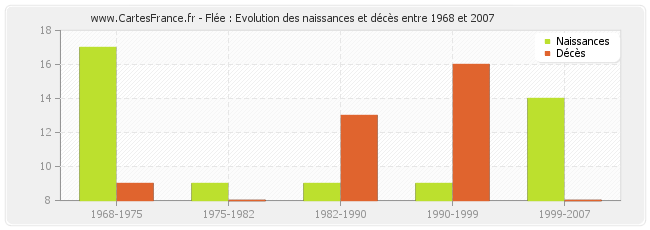 La population de Flée était de 158 habitants en 2007, 136 habitants en 1999, 136 habitants en 1990, 118 habitants en 1982, 131 habitants en 1975 et 149 habitants en 1968.