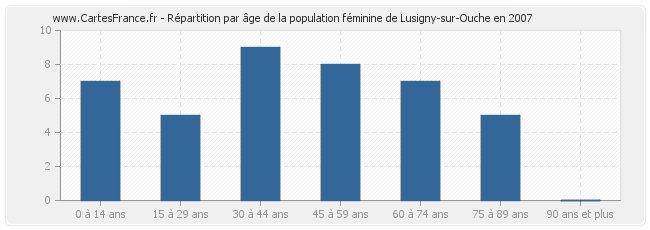 Répartition de la population féminine de Lusigny-sur-Ouche par âge en 2007 :