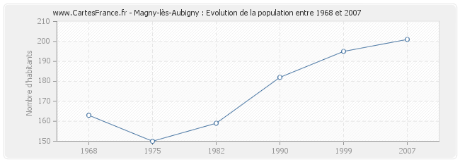 Historique de la population de Magny-lès-Aubigny de 1968 à 2007 :