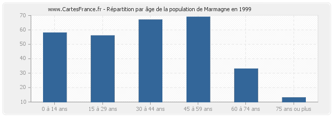 - Population de Marmagne de 60 à 74 ans : 33 habitants