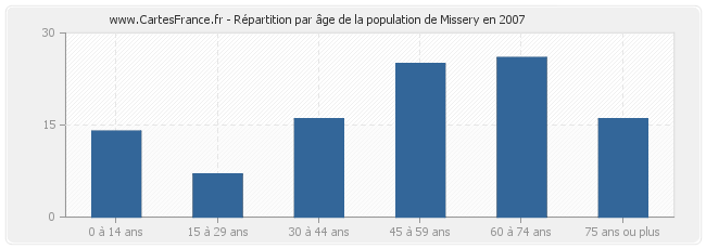 - Population de Missery de 60 à 74 ans : 26 habitants