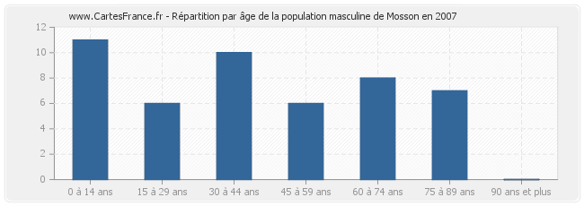 - Population de Mosson de 60 à 74 ans : 15 habitants