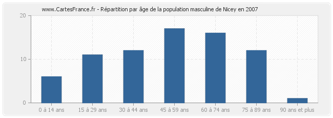 - Hommes de 45 à 59 ans habitant Nicey : 17