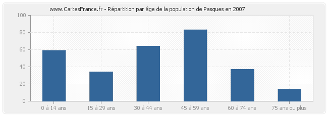- Population de Pasques de 45 à 59 ans : 83 habitants