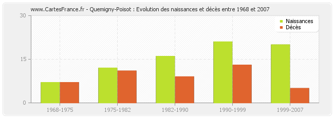 Quemigny-Poisot : évolution des naissances et décès de 1968 à 2007