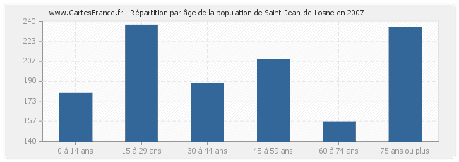 - Population de Saint-Jean-de-Losne de 15 à 29 ans : 237 habitants