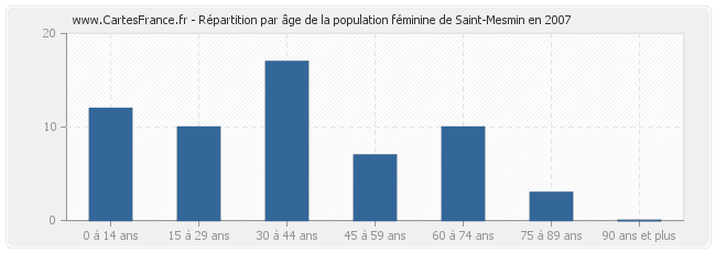 Répartition de la population féminine de Saint-Mesmin par âge en 2007 :