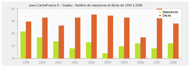 - Saulieu en 2008 : 25 naissances et 45 décès