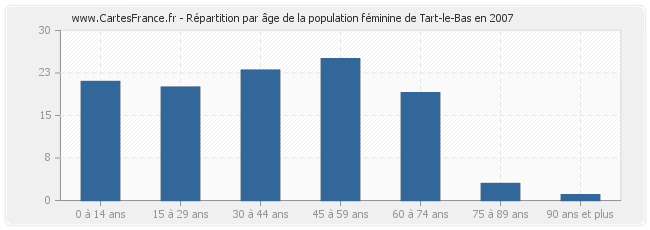 Répartition de la population féminine de Tart-le-Bas par âge en 2007 :