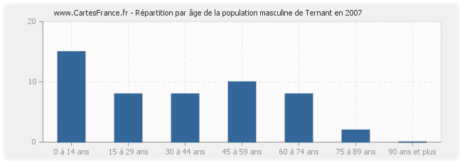 - Hommes de 0 à 14 ans habitant Ternant : 15
